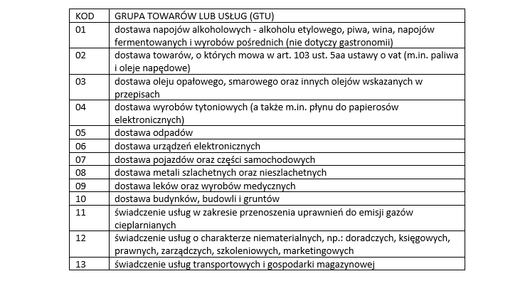 FAKTURA NIE MUSI ZAWIERAĆ KODÓW GTU